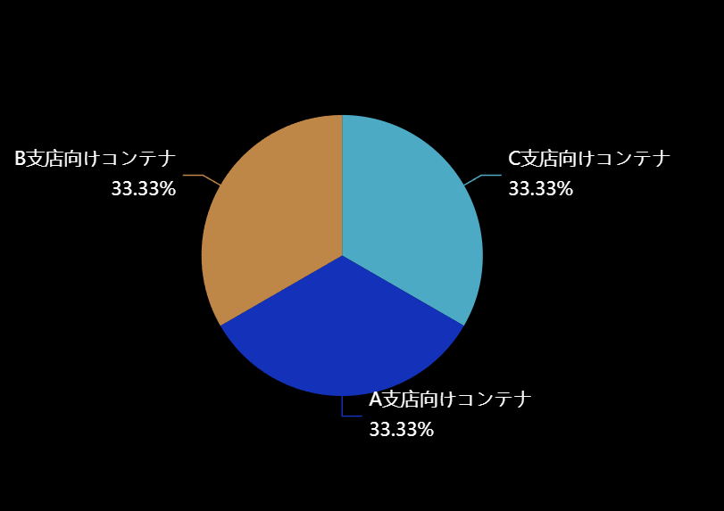 - 梱包済の品目は仕分け処理され、行き先(A支店、B支店、C支店)ごとに出荷される