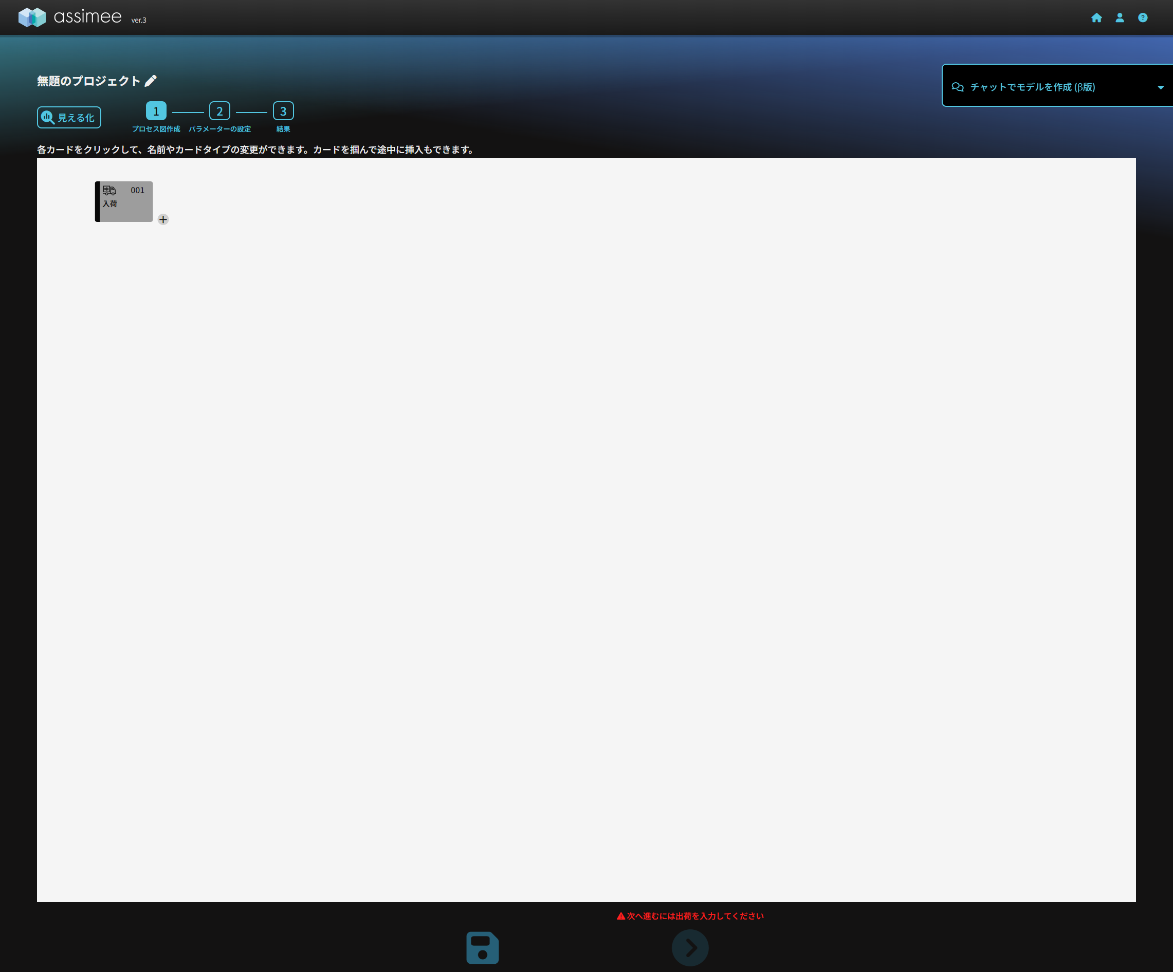 モデルを作成していきます。まず、TOP画面で「見える化」ボタンを押します。