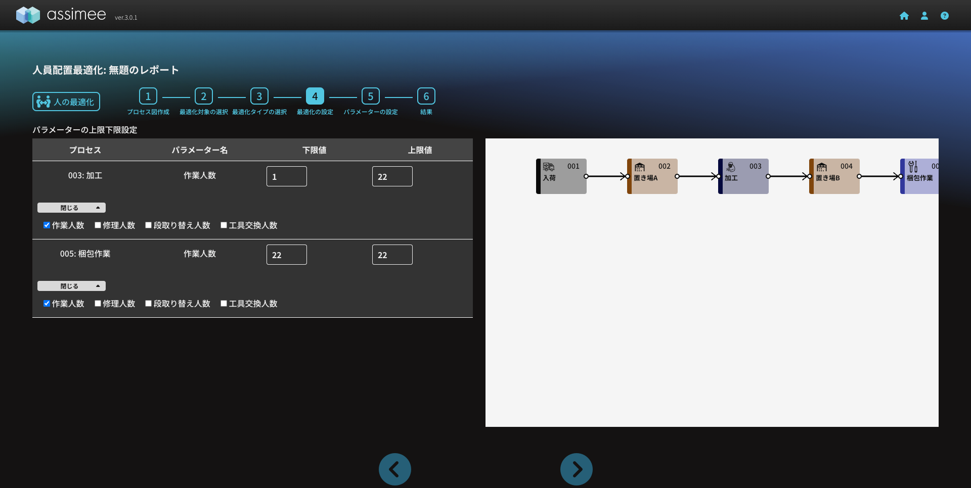 以上のようにすることで、担当のあなたは、出荷目標を達成するために加工と梱包作業の作業人数を減らすことができました。*なお、最適化にはランダム変数を用いているため、最適化の結果が一致しないことがあります。