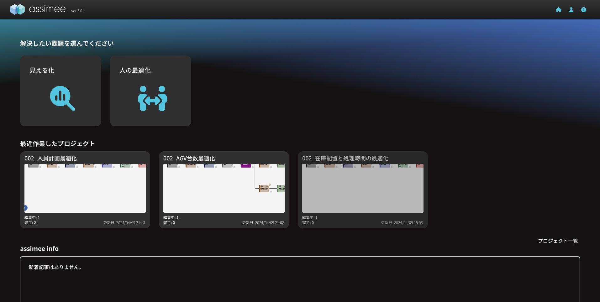 下図のように新しい課題として「見える化」か「人の最適化」の選択が表示されるので、「人の最適化」を選択してください。