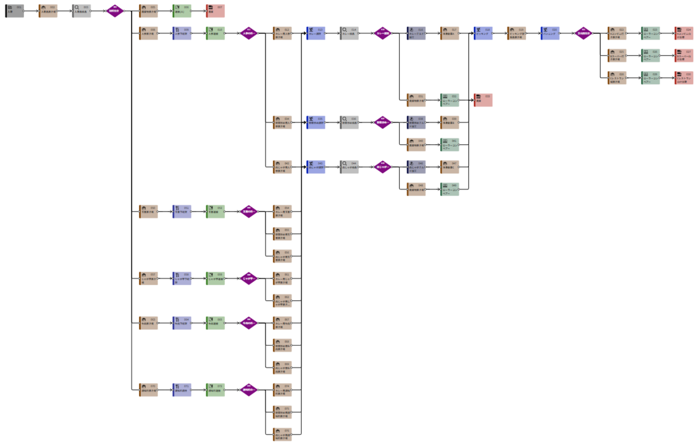 今回の記事では食材の調理や加工を行う食品工場(セントラルキッチン)が設置されたPDC型物流倉庫を再現したモデルの作成について解説しました。複数の食品の調理を行うための分岐、材料や食材の検品による不良品の選別、出荷の行先別仕分けといった実際に工場や物流倉庫内で行われる様々なプロセスを再現した巨大なモデルを作り込みました。このようにassimeeではシミュレーションをPC上で手軽に行うことが可能となっています。