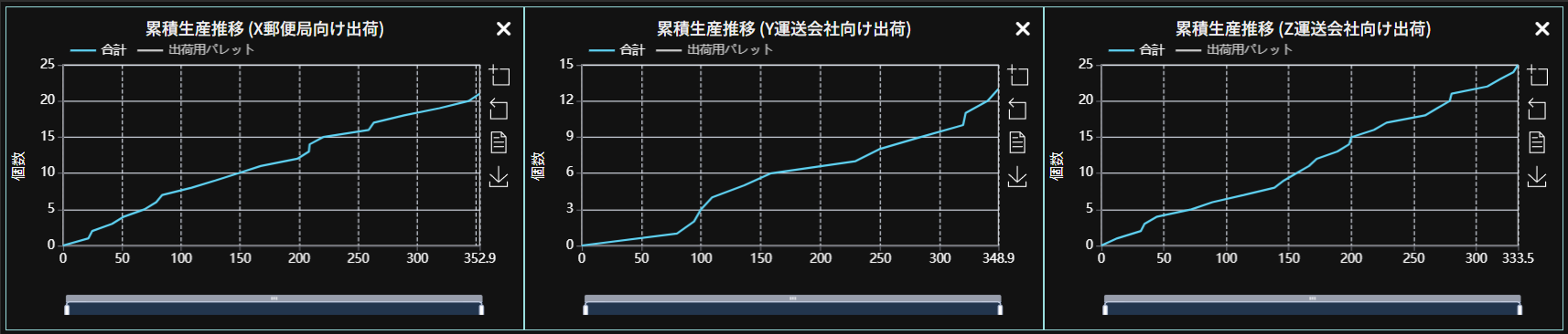 図:シミュレーション結果(出荷ごとの累積生産推移)