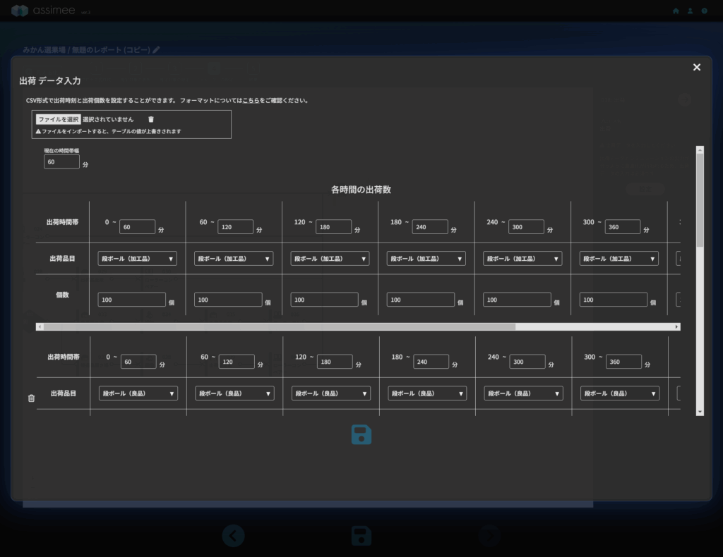 assimeeでは品目ごとに出荷目標を立てることが出来ます。今回は上のシミュレーション結果を参考に出荷目標を設定して出荷量をコントロールしてみましょう。