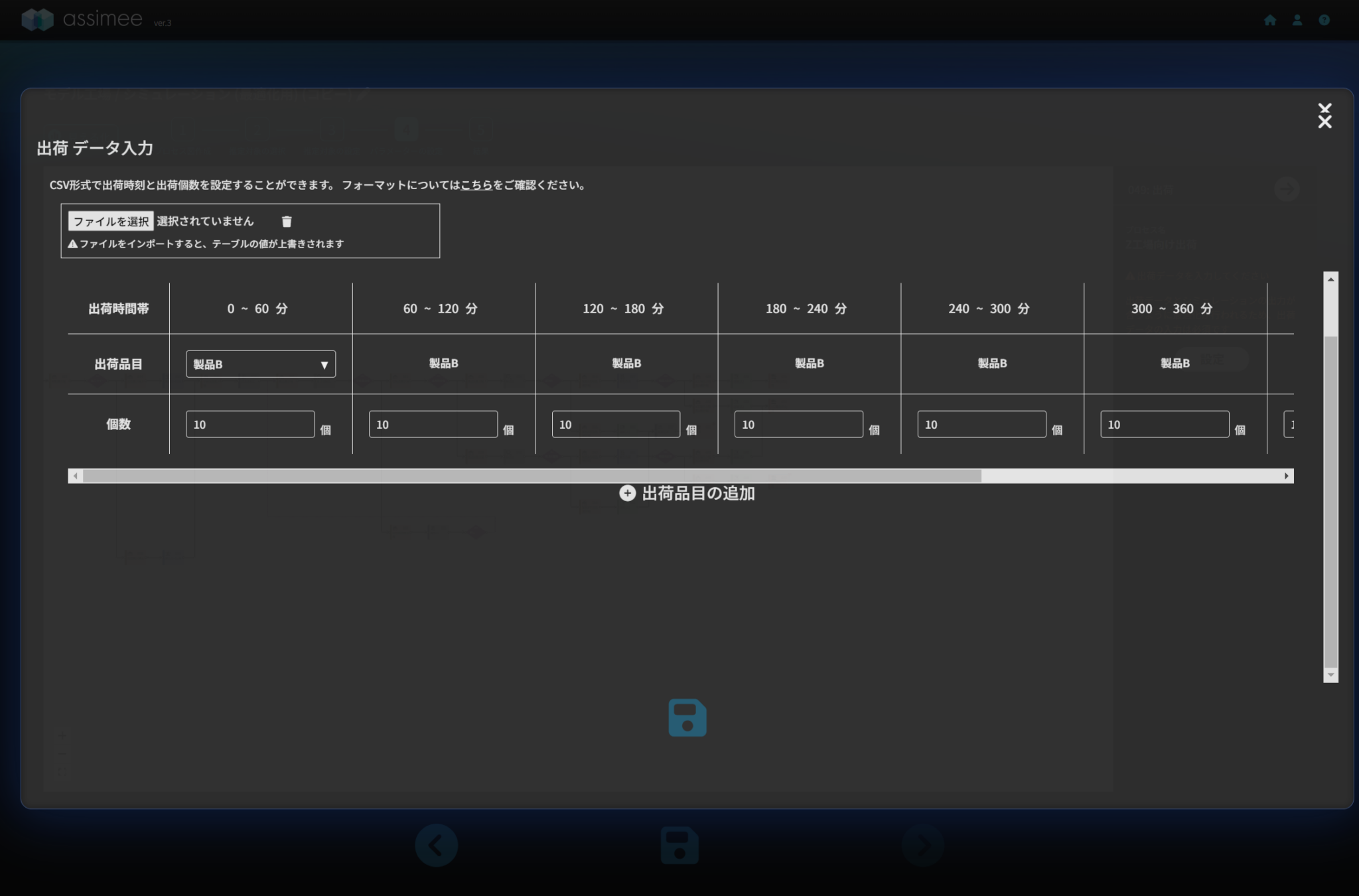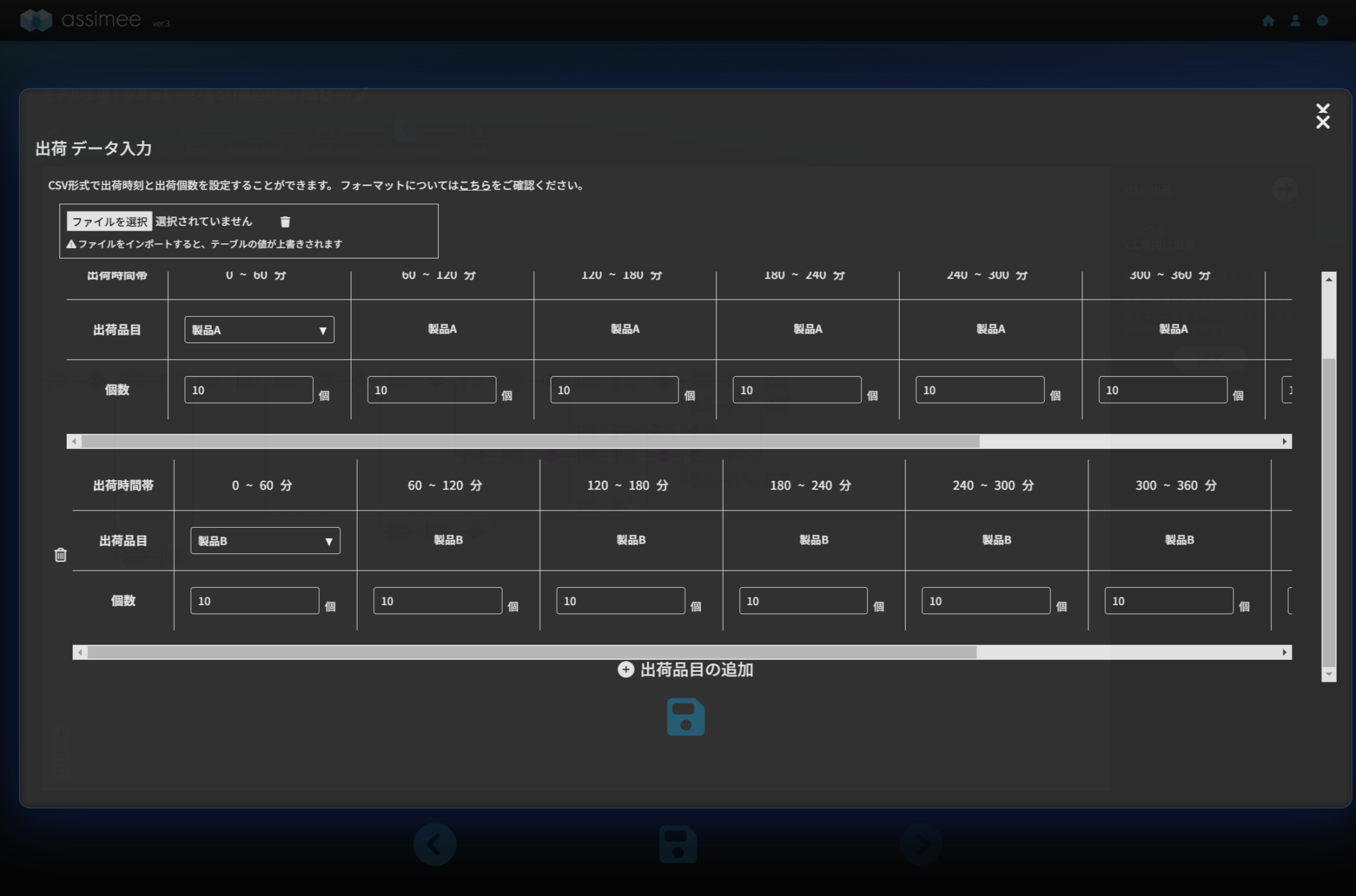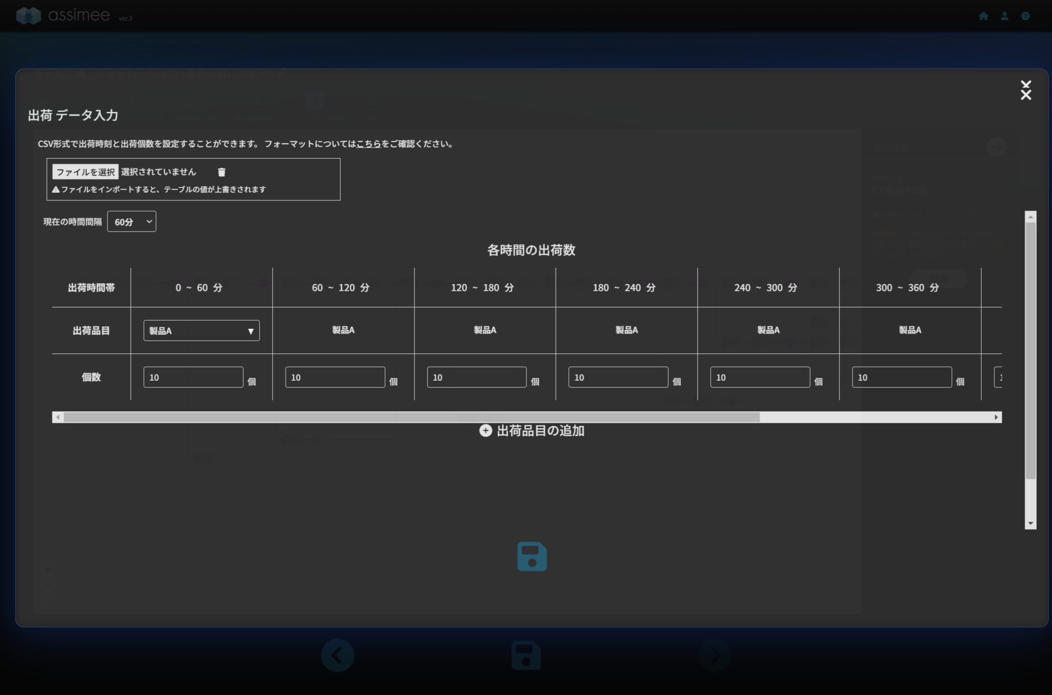 今回の記事では工具交換や故障・修理による停止時間を見込んだモデルを作成し、人員の最適化を行いました。これにより、停止時間を見込んで人員配置を増やすことが出来ています。今回のようにassimeeでは様々な条件を考慮した形での最適化を行い処理時間や在庫容量、作業人数などを求めることが可能です。