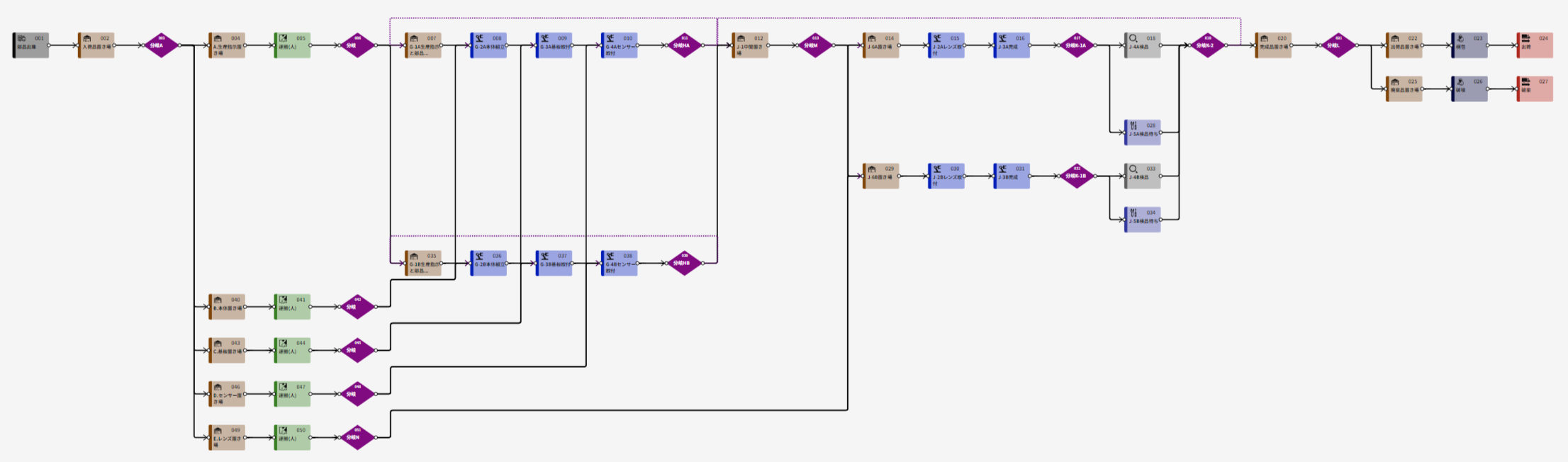 assimeeでは、実際の製造プロセスをモデル化したシミュレーションや、既存のVSM(バリューストリームマップ、物と情報の流れ図)を活用した直接的なシミュレーションが可能です。これにより、製造プロセスの「見える化」を実現し、潜在的な課題を明確にすることができます。製造プロセスのデジタル化や課題解決にお悩みの方は、ぜひお気軽にお問い合わせください。