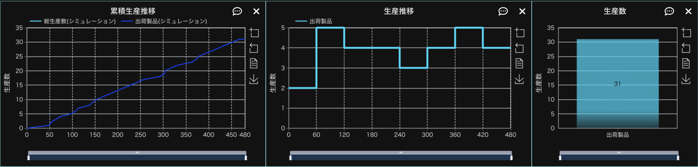 この記事では、ランダムショップ型生産方式の「見える化」を行い、通常のフローショップ型生産ラインとの生産量の比較について解説しました。今回の解説でも示した通り、assimeeを活用すれば、生産プロセスの順番やパラメーターを簡単に変更し、シミュレーションを通じて生産量や稼働率を「見える化」することが可能です。また、モデル間の比較も手軽に行うことができます。これにより、生産ラインの改善や改造の検討といった業務を効率的に進めることができます。