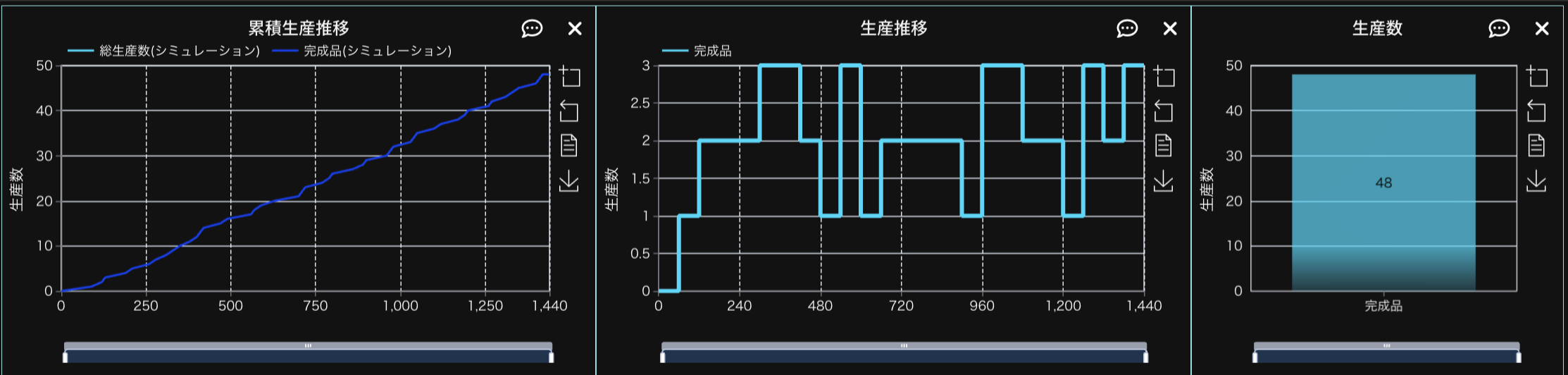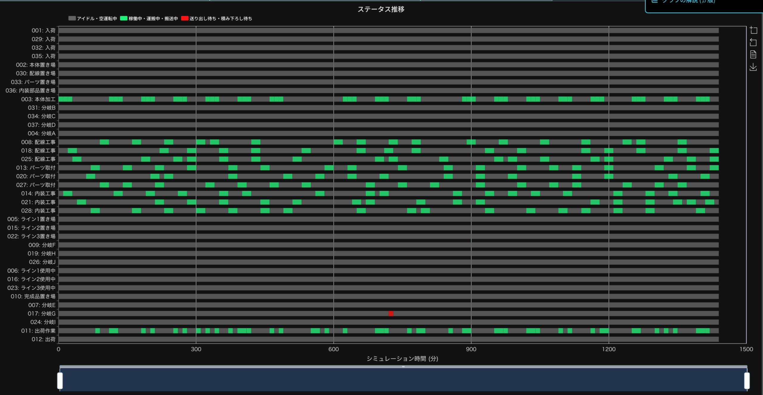 1440分で41個の製品が出荷されていることがわかります。次に、各プロセスのステータス推移を確認してみましょう。