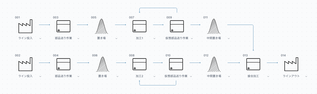 今回のモデルでは、以下のような製造工程を想定しモデルを作成します。