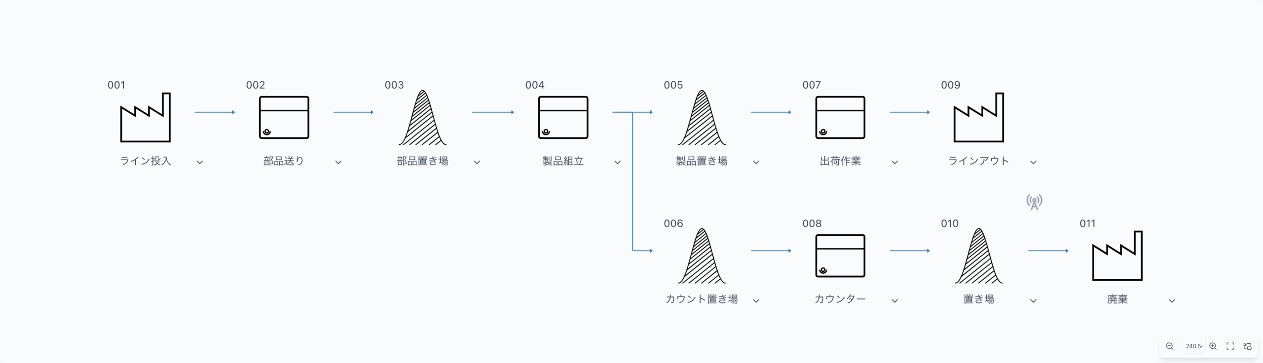 assimeeでは、実際の製造プロセスをモデル化しシミュレーションや、既存のVSM(バリューストリームマップ、物と情報の流れ図)を活用した直接的なシミュレーションが可能です。これにより、製造プロセスの「見える化」を実現し、潜在的な課題を明確にすることができます。製造プロセスのデジタル化や課題解決にお悩みの方は、ぜひお気軽にお問い合わせください。