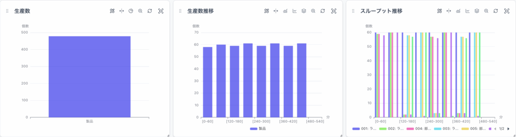 シミュレーション時間を480分(8時間)に設定して実行し、ステータス推移を確認しました。