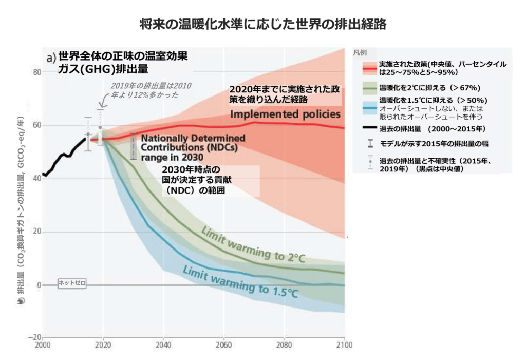 - 今世紀後半には、人為的なGHGの排出量と吸収量を均衡させる(=ネットゼロ)こと