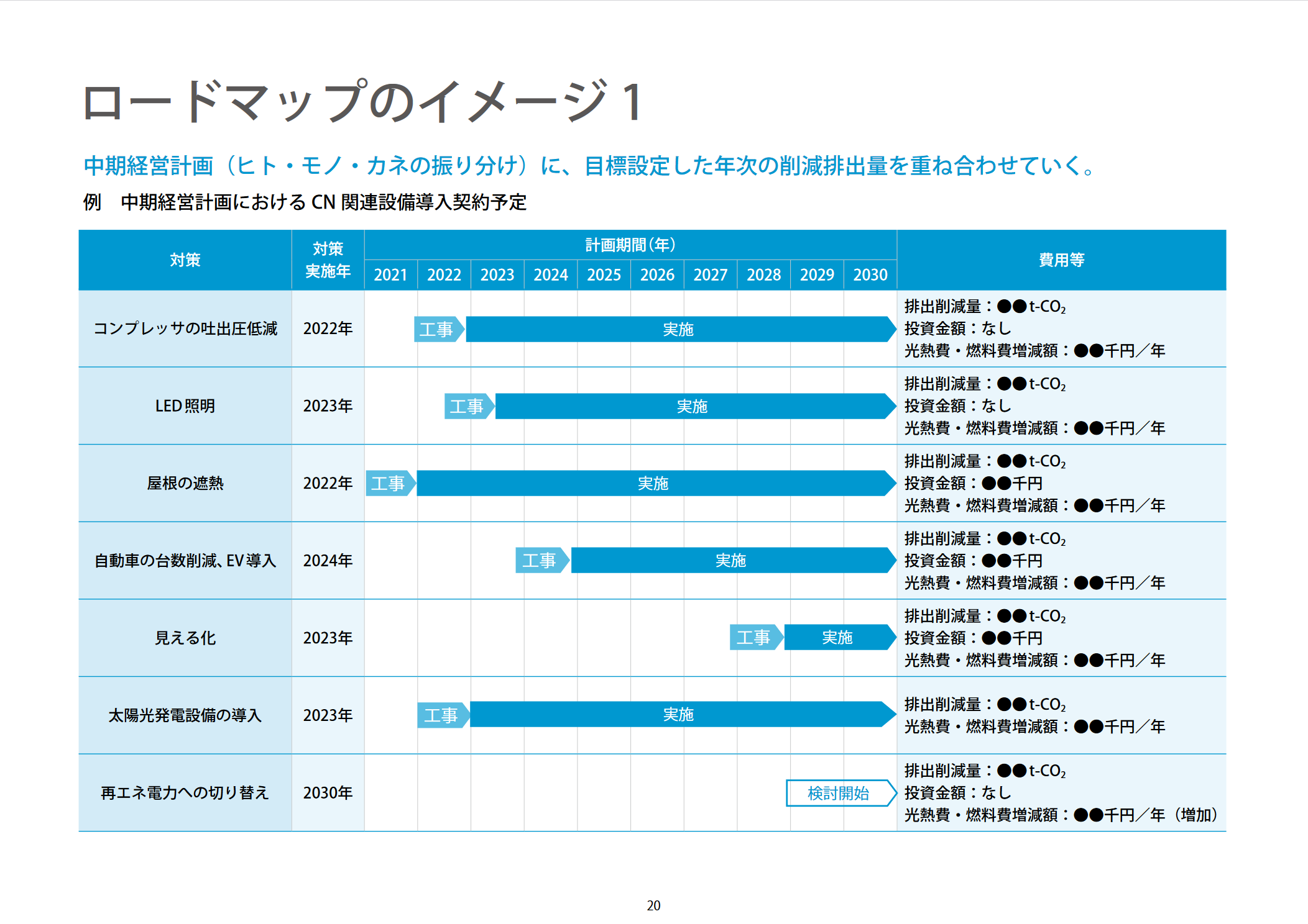 稼働時間の最適化でエネルギー使用量が減らせるのであれば、人員配置の見直しを検討する。 - 設備投資時期の適正化