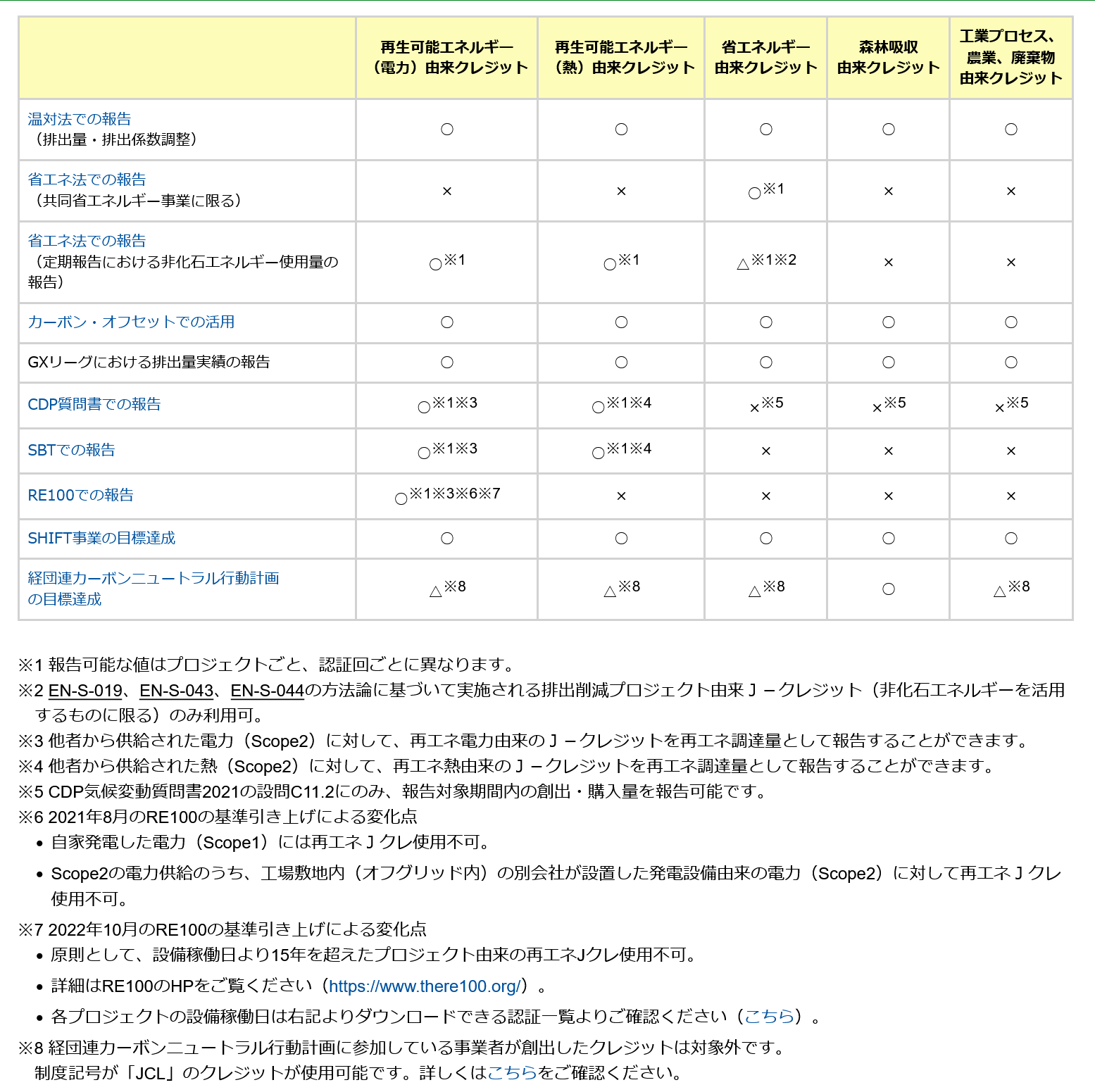 温対法で報告するGHG排出量の報告に単年度のクレジットを利用可能